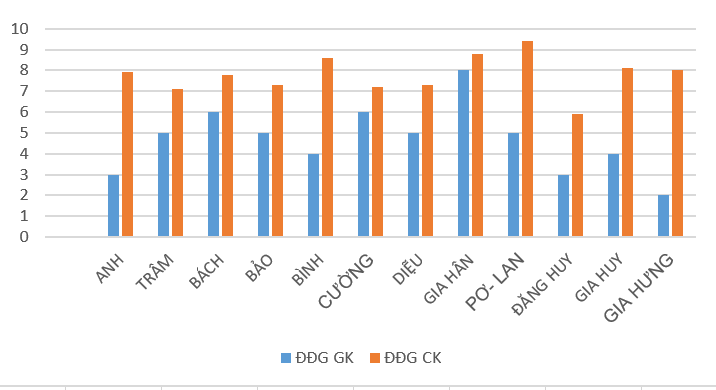 🌟 Từ nỗ lực bền bỉ đến kết quả bứt phá: Thông qua quá trình luyện tập đều đặn và theo dõi sát sao tiến độ học tập qua từng tuần, các đã từng bước hình thành thói quen tự học, chủ động củng cố kiến thức và nâng cao kỹ năng làm bài. Chính sự tích lũy bền bỉ ấy đã tạo nên bước chuyển biến rõ rệt trong kết quả thi, khi điểm số cuối kỳ của nhiều bạn tăng đáng kể so với giữa kỳ. Kết quả không chỉ là sự tiến bộ về mặt học lực, mà thấy được các bạn đã phát triển về kỹ năng tự học.